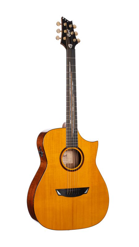 Small body with lower bout width of 372?(14 21/32") and upper bout width of 280?(11"), 100? x 105? body depth gives ideal resonation of each and every note played. Stronger and denser than Sitka spruce, the Adirondack spruce is characterized by broad dynamics as well as articulation and smoothness at high volume. The elastic tactile response suits both aggressive strumming and precise flatpicking. Adirondack spruce bracing further sets apart the unique sound and response of this exceptional wood. Famously used on the sought-after vintage Martin dreadnaughts of the 1930’s, the difficult-to- source Adirondack spruce is the crowning feature of this model at a most reasonable price. Blackwood is like a combination of the low-mids of mahogany, the brightness of maple and the rich overtones of rosewood. This versatility makes blackwood stand out for both fingerstyle playing or strumming as well as being a perfect match for the spruce top. With a sophisticated modern design and innovative technical engineering, the Fishman® Flex Blend System offers a wide range of sonic control along with a built-in tuner. Volume, Tone, Phase, Blend and Tuner functions are all available from three knobs and the tuner display. You can also adjust the Tone knob to best suit fingerpicking or strumming techniques without feedback issues and other sonic anomalies while delivering the most natural acoustic sound to your amplification system. A very strong and dense wood, ebony provides a tight and coherent low-end with enhanced mids. The jet-black imparts class and a luxurious look. Thanks to Frank Gambale's dedication on designing of the guitar, the instrument designed based on modern Art Deco influence. Preferred by many guitar makers and players for rich tone and sustain, the TUSQ is an advanced polymer that's formed under heat and pressure for uniform density. It's designed to transfer string energy more efficiently, and to make guitars come alive with enhanced harmonics, volume and sustain.